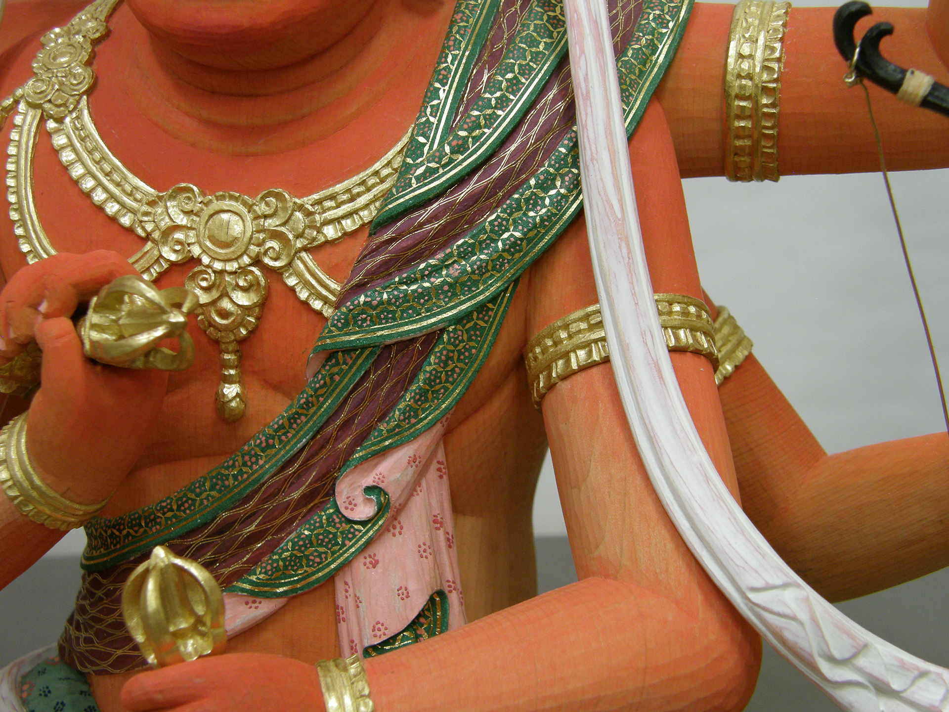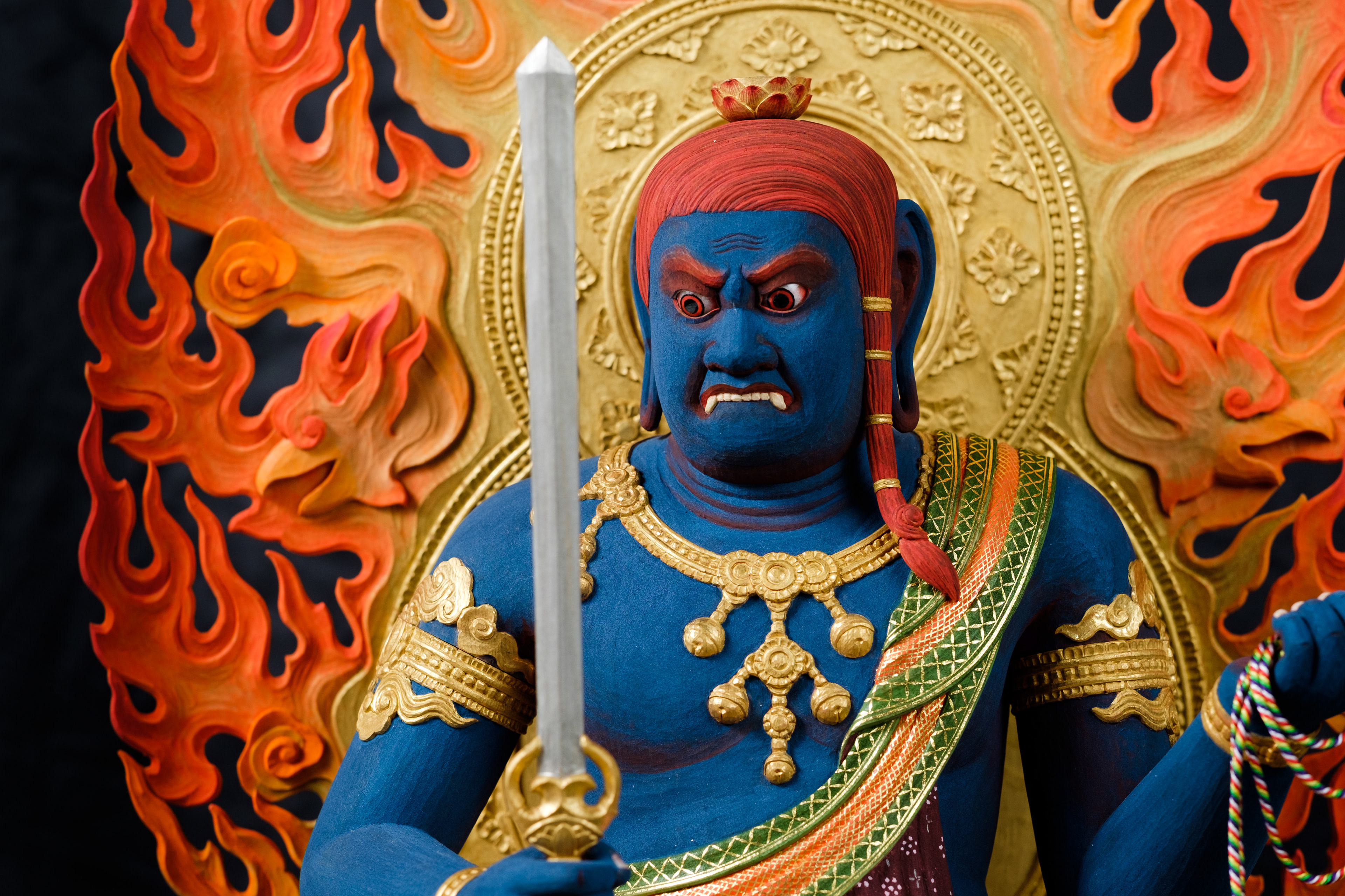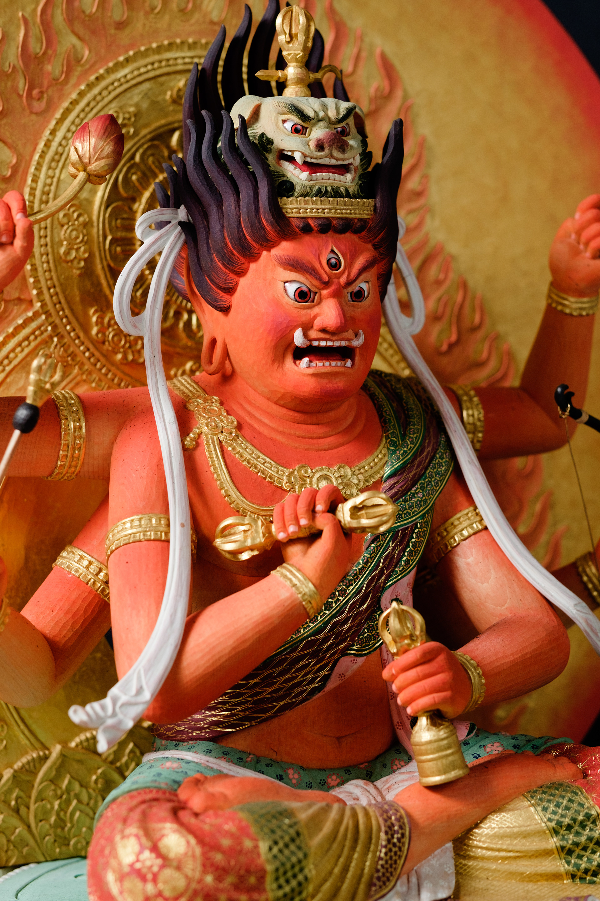 愛染明王坐像:7寸(21cm),ヒノキ,寄木造り,玉眼,2013年 制作期間3年 彩色担当・並木秀俊