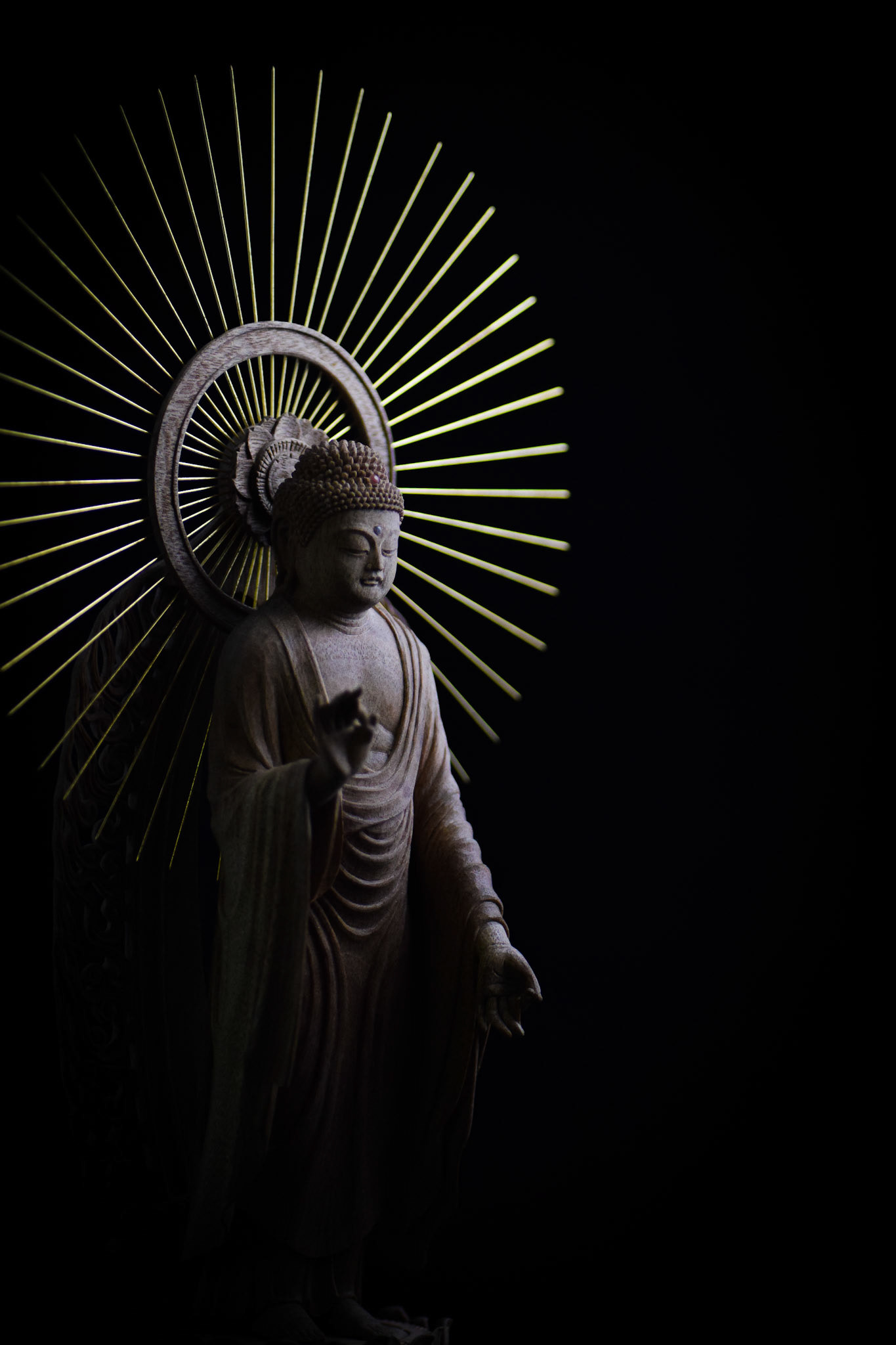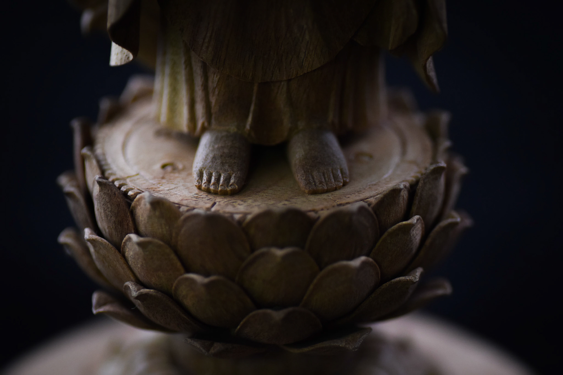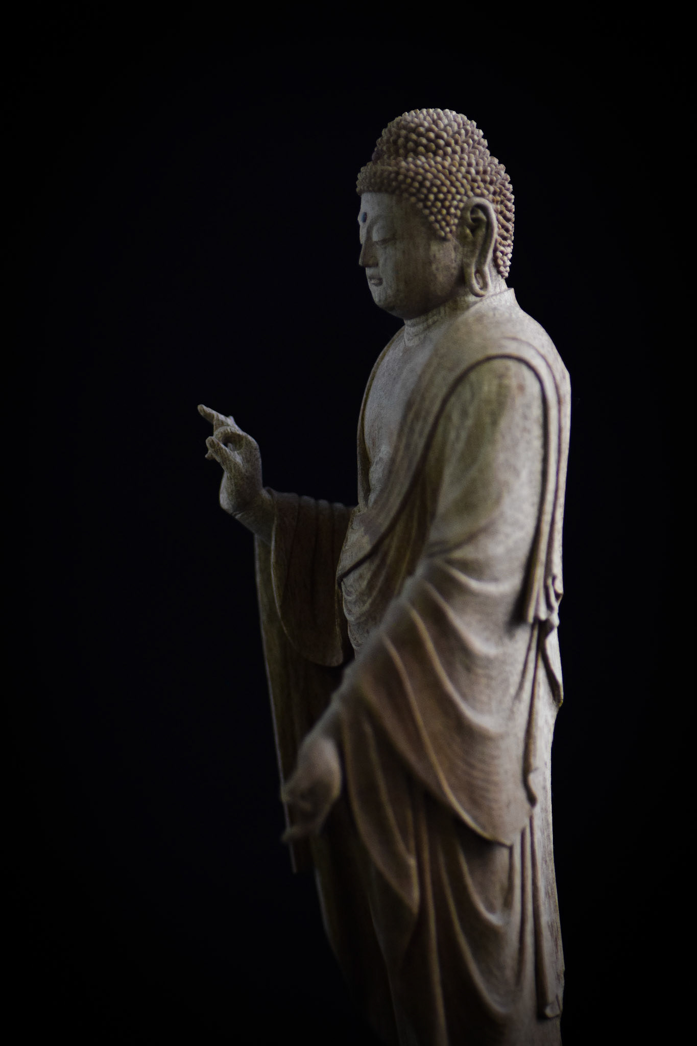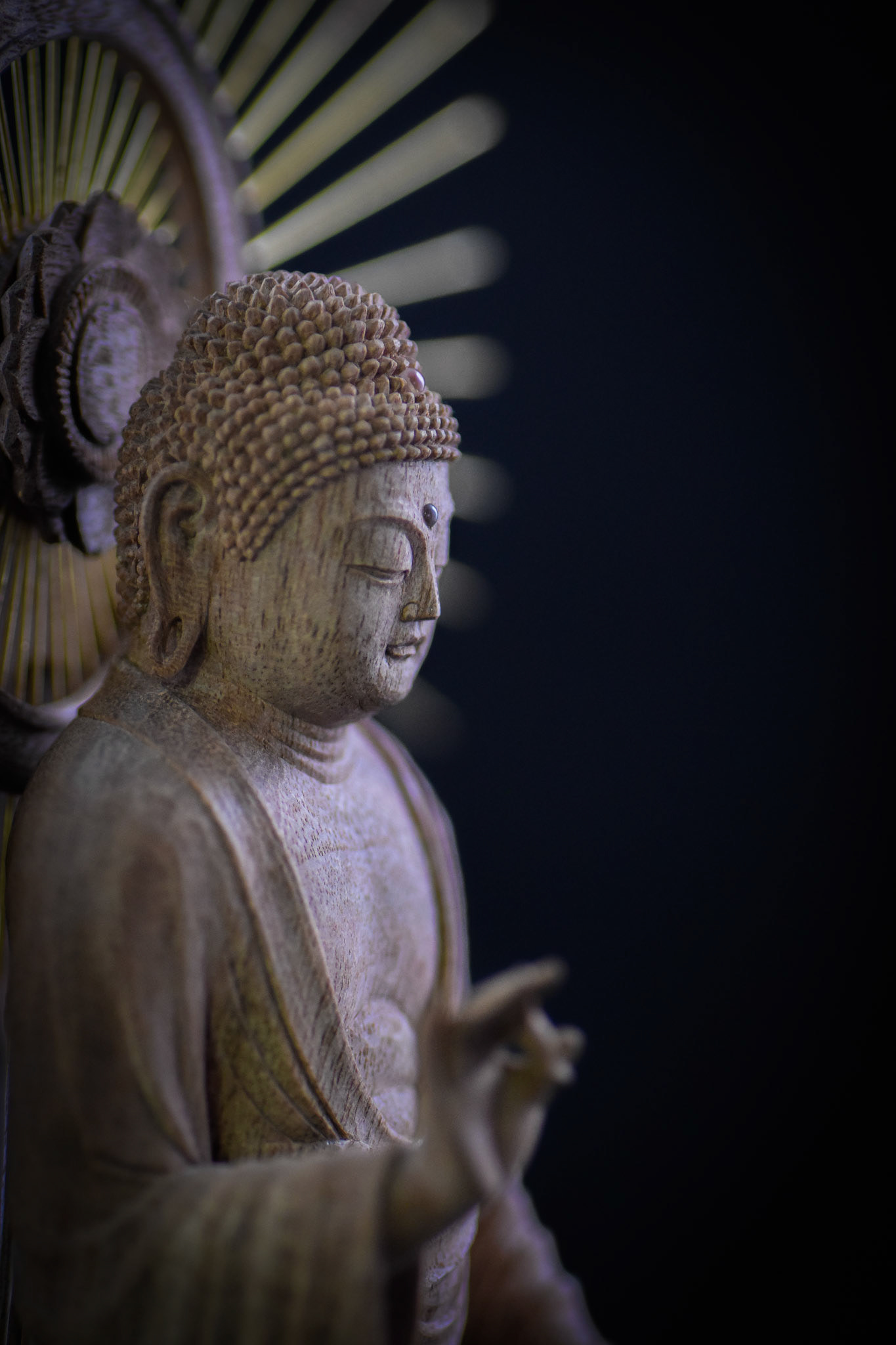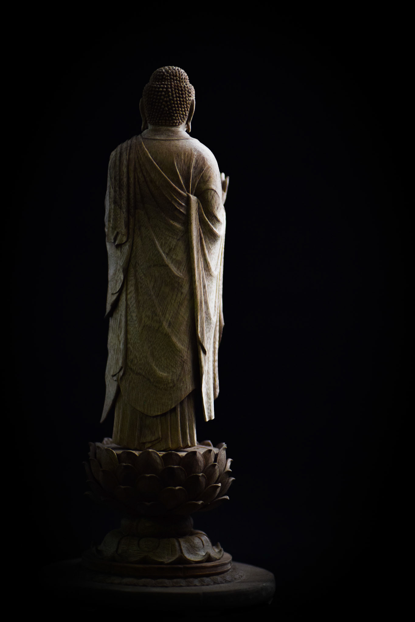 H16.2cm 楠材, 一木造り 木彫 吉田安成 (御神木の供養として, 個人蔵 , 2019) Camphor tree sculpture in ichiboku-zukuri style Carved by YOSHIDA Yasumasa (Consecration of a salvaged branch by sculpting a Buddha statue, in private possession, 2019)