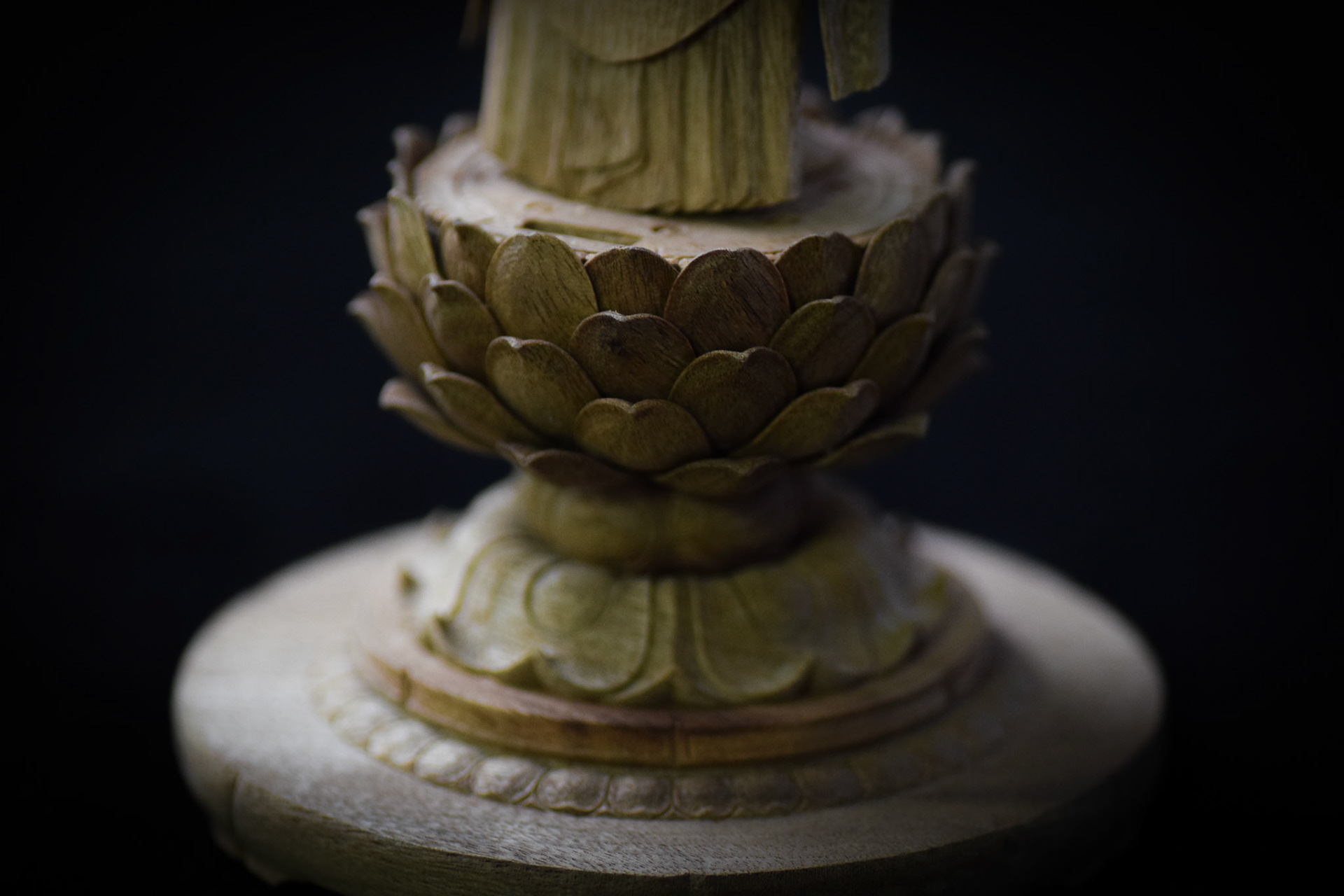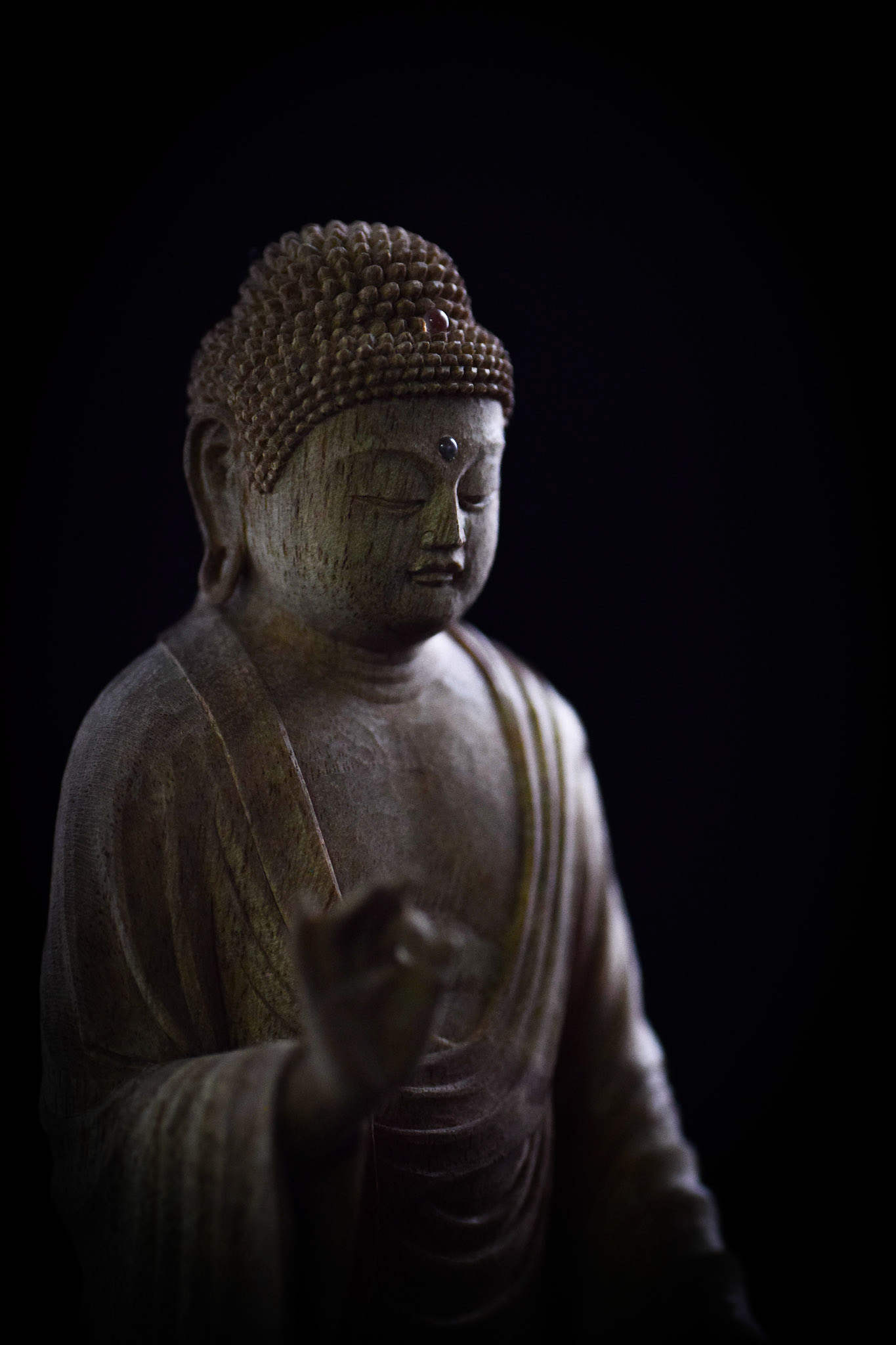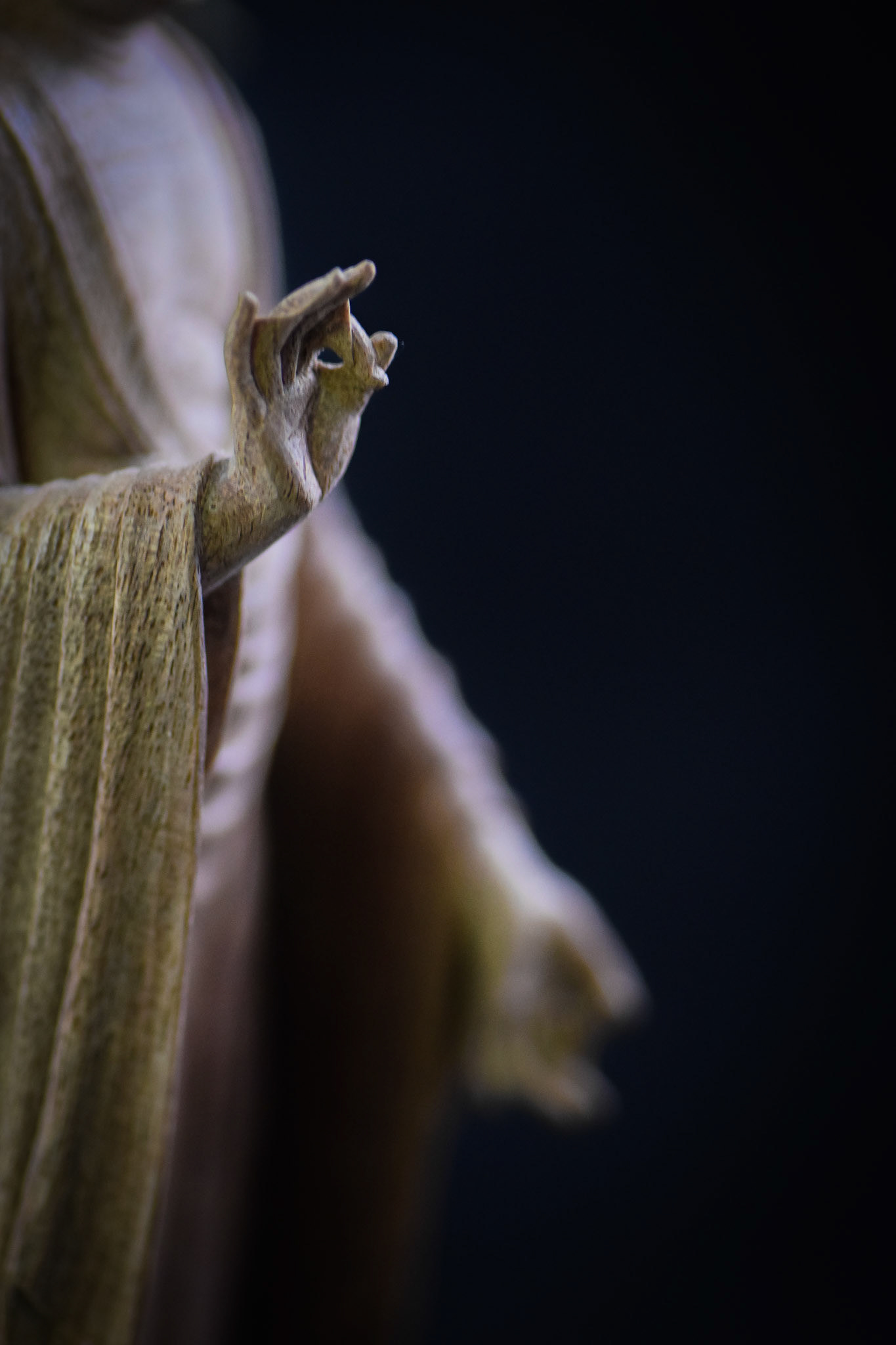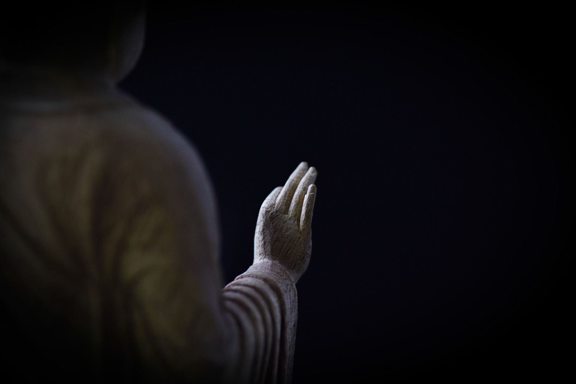 H16.2cm 楠材, 一木造り 木彫 吉田安成 (御神木の供養として, 個人蔵 , 2019) Camphor tree sculpture in ichiboku-zukuri style Carved by YOSHIDA Yasumasa (Consecration of a salvaged branch by sculpting a Buddha statue, in private possession, 2019)