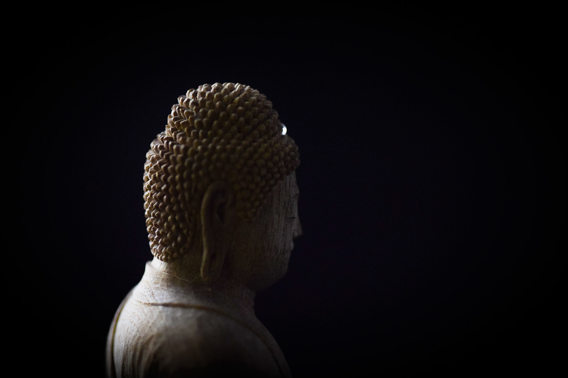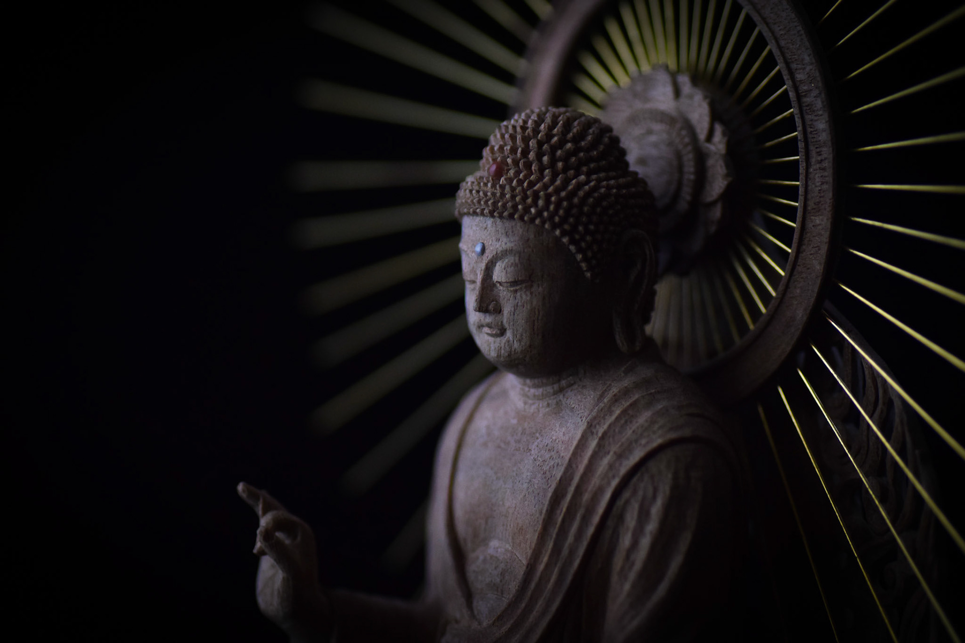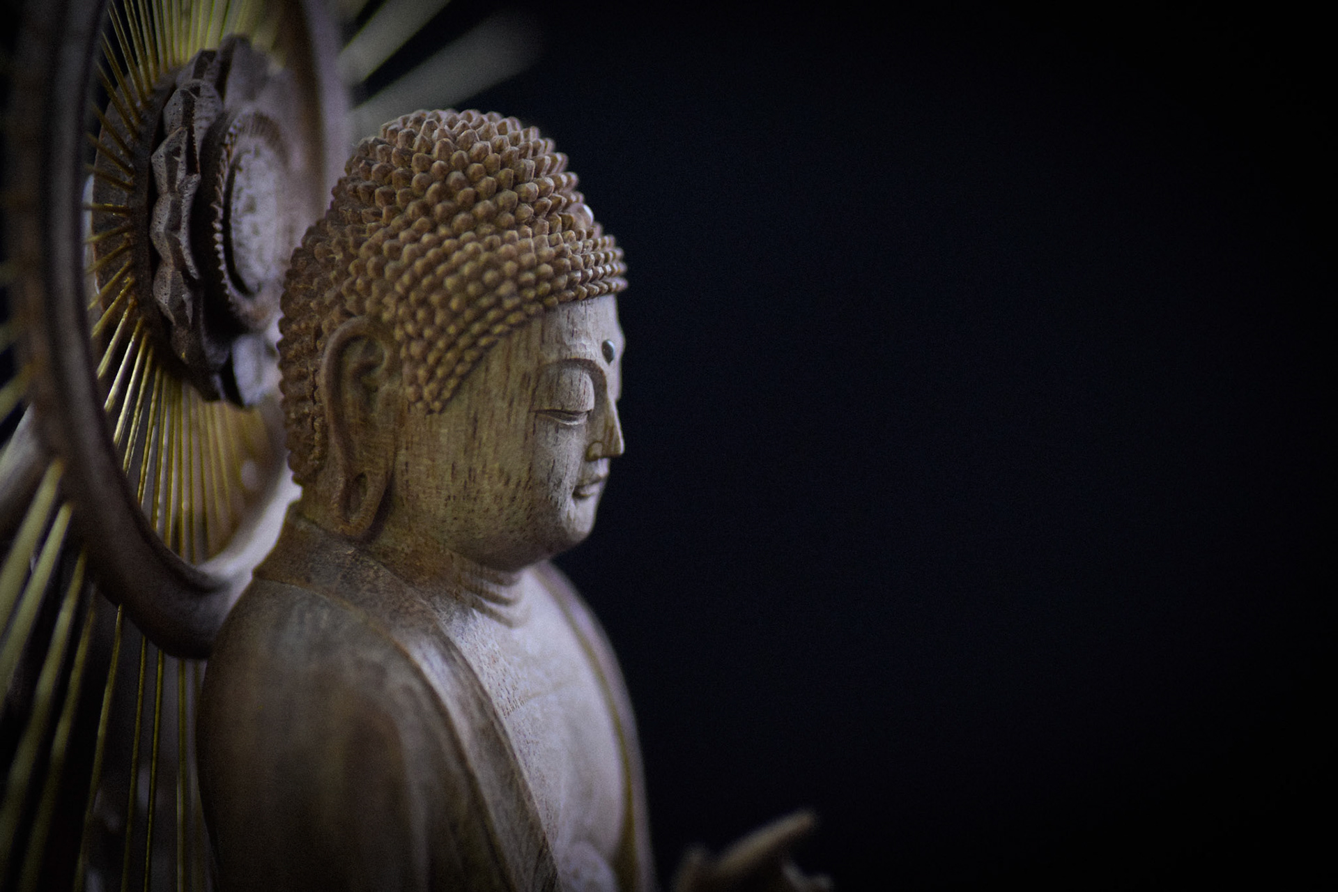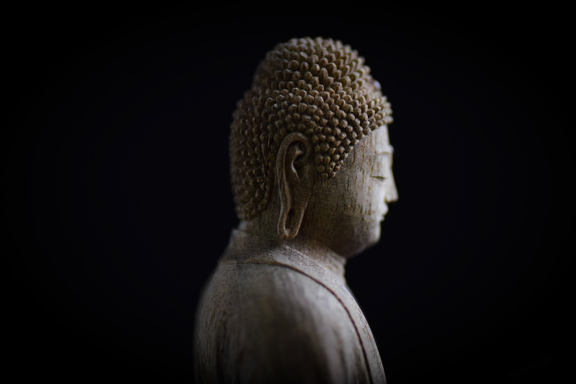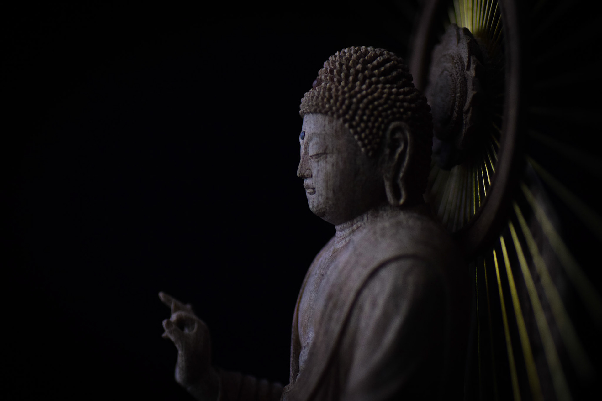 H16.2cm 楠材, 一木造り 木彫 吉田安成 (御神木の供養として, 個人蔵 , 2019) Camphor tree sculpture in ichiboku-zukuri style Carved by YOSHIDA Yasumasa (Consecration of a salvaged branch by sculpting a Buddha statue, in private possession, 2019)